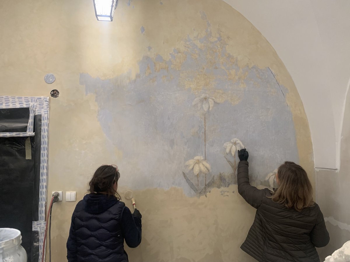 W trakcie prac w pomszczeniach biblioteki klasztoru odkryto malowidła ścienne, a więc nasz tytułowe "kwiatki" :)