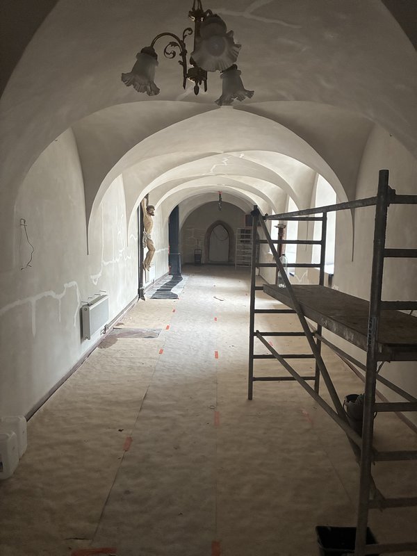 Na zimę główne prace w ramach projektu "Ciricium i Słowacki Watykan. Ochrona i rewitalizacja zabytków sakralnych i miejsc wokół nich" przeniosły się do wewnątrz klasztoru i skupiły na tynkach ścian i sklepień.